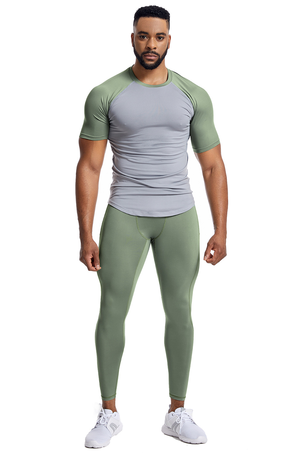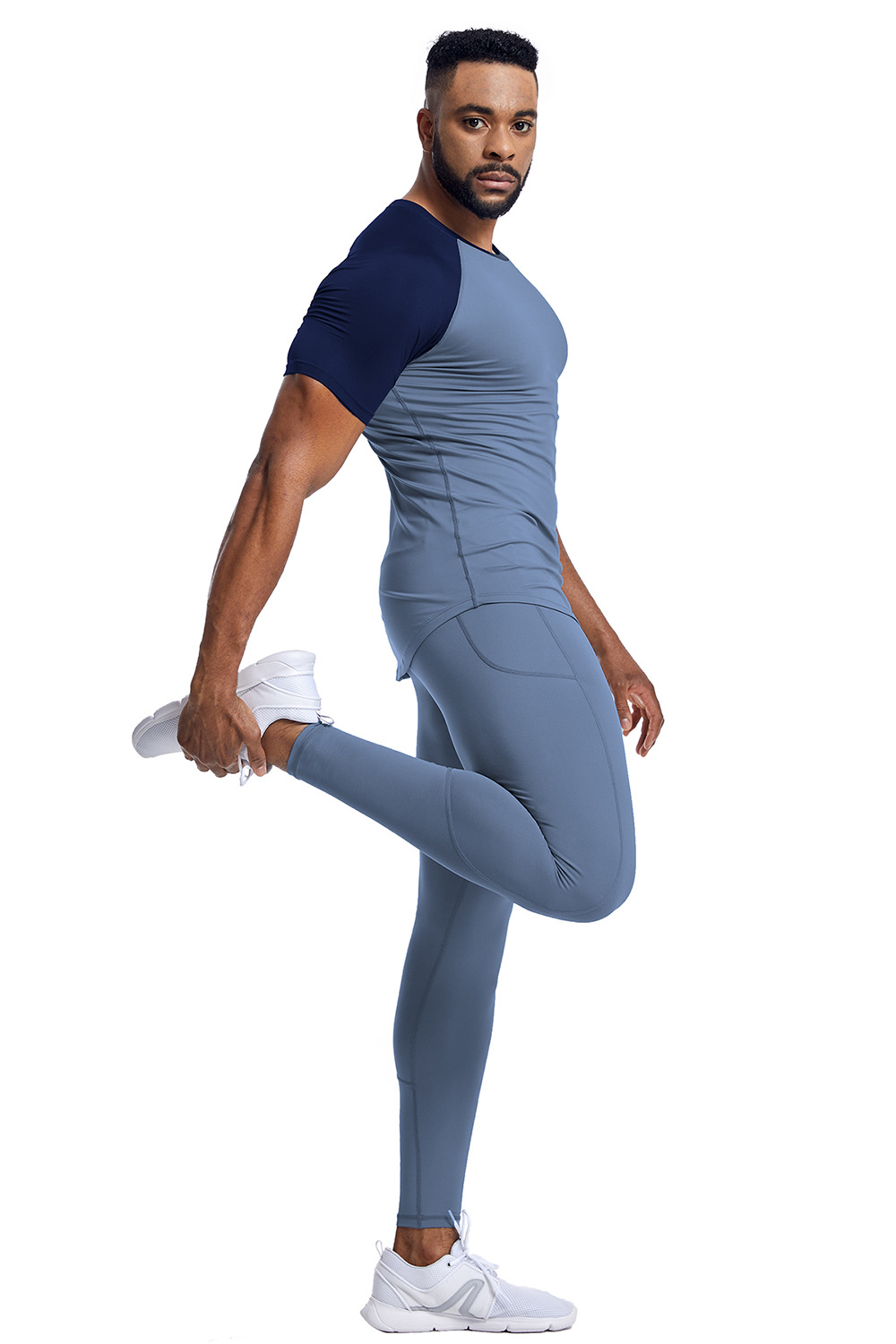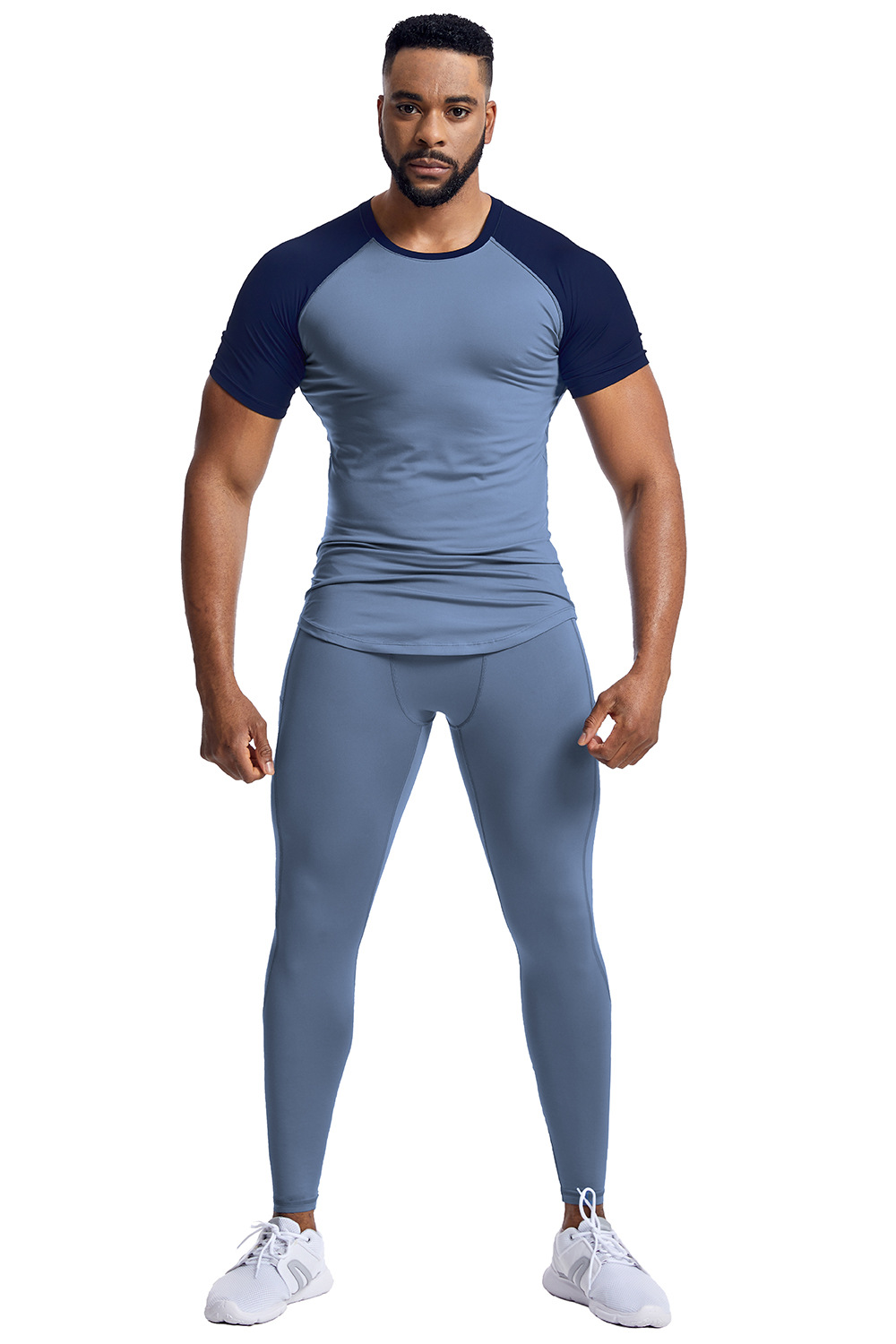 Elevate your performance with this men’s two-piece short-sleeved fitness clothing set, designed for fall training and intense workouts. This set includes high-elastic, quick-drying leggings and a breathable top that together provide excellent support and comfort. Made from a durable chemical fiber blended fabric, it ensures moisture-wicking performance, keeping you dry and focused as you tackle any activity. The sleek, athletic fit contours to your body, allowing for unrestricted movement during running, training, or sports practice.