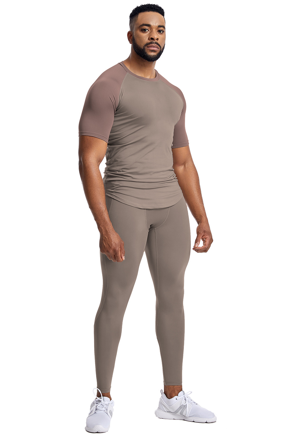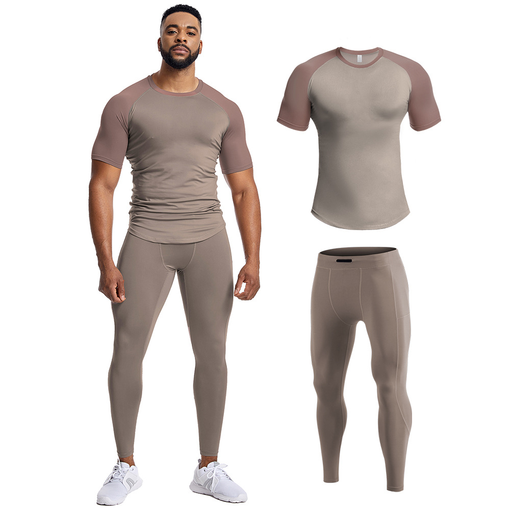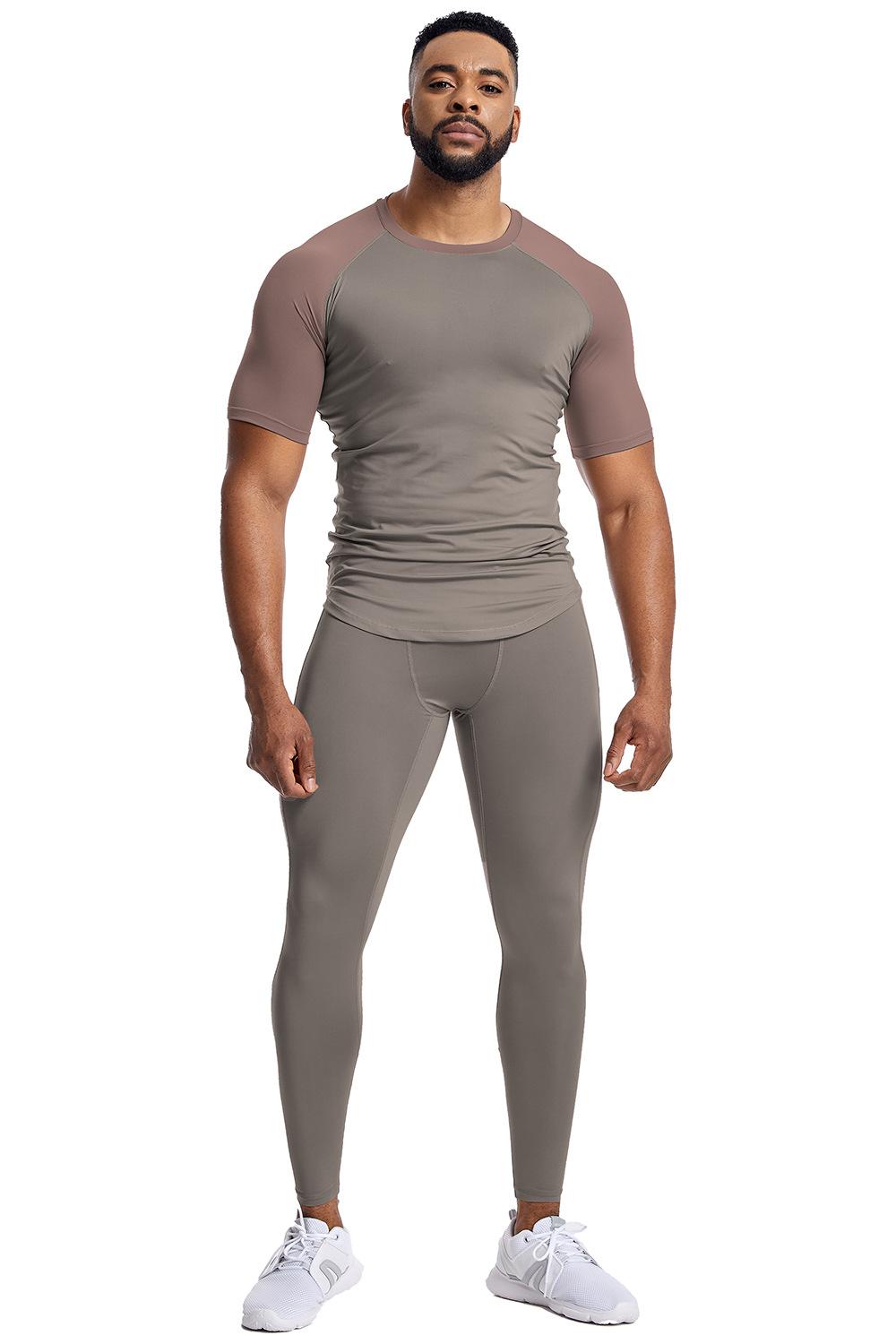 Elevate your performance with this men’s two-piece short-sleeved fitness clothing set, designed for fall training and intense workouts. This set includes high-elastic, quick-drying leggings and a breathable top that together provide excellent support and comfort. Made from a durable chemical fiber blended fabric, it ensures moisture-wicking performance, keeping you dry and focused as you tackle any activity. The sleek, athletic fit contours to your body, allowing for unrestricted movement during running, training, or sports practice.